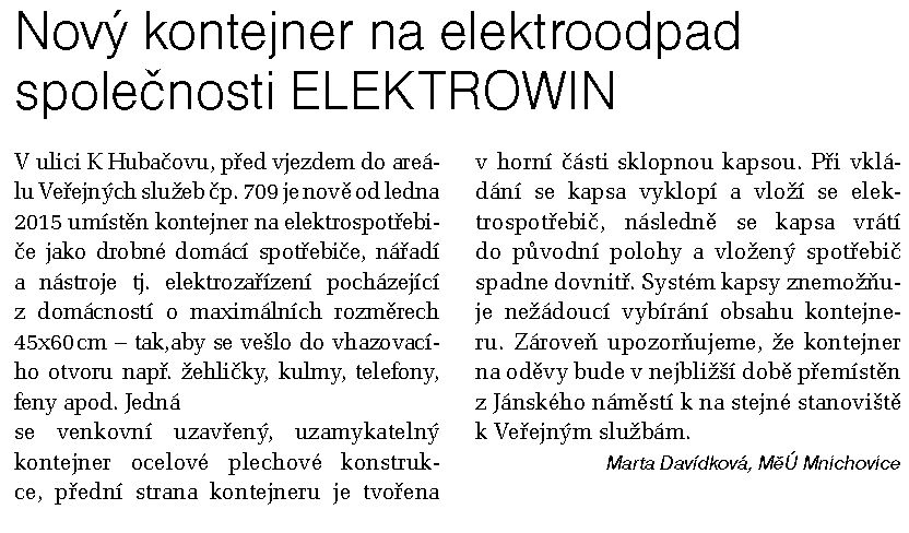 Nový kontejner na elektroodpad (ŽIVOT MNICHOVIC, 2015-01)