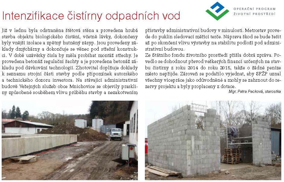Intenzifikace čistírny odpadních vod (ŽIVOT MNICHOVIC, 2015-02)
