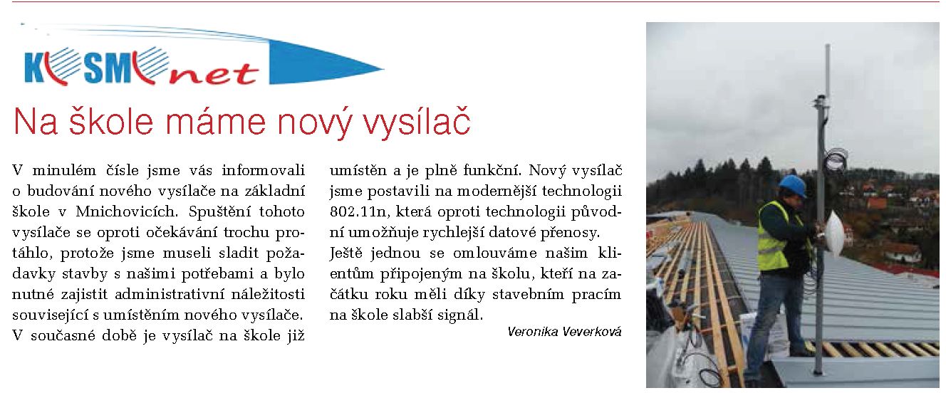 Nový vysílač na škole v Mnichovicích (ŽIVOT MNICHOVIC, 2015-02)