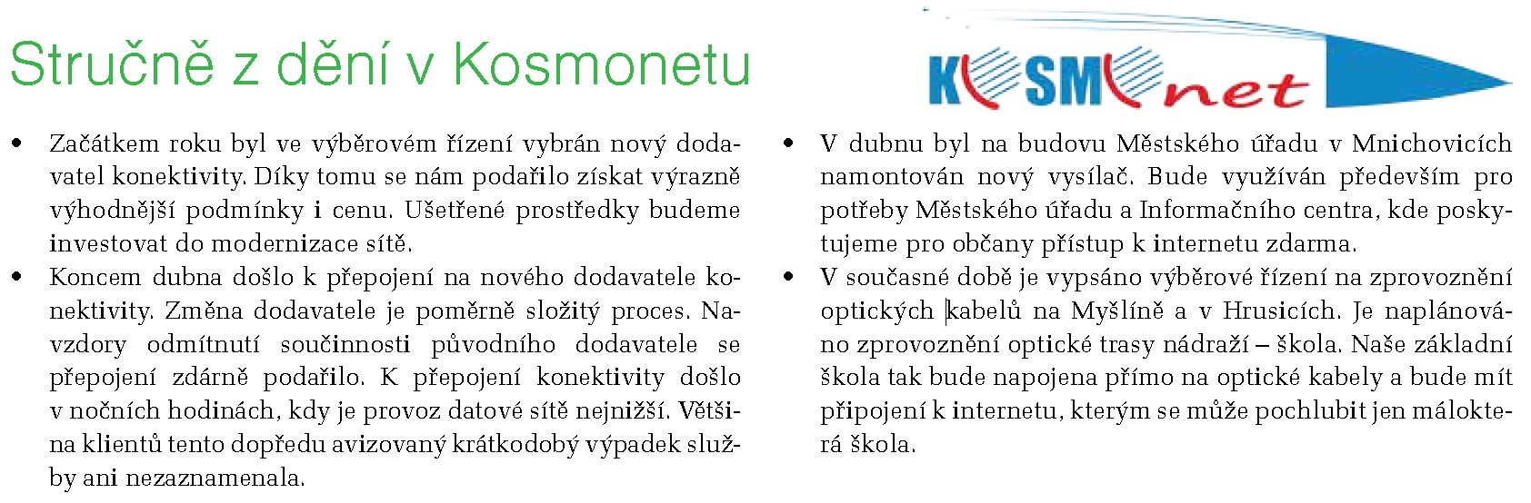 Zvyšujeme rychlost internetu všem našim zákazníkům (ŽIVOT MNICHOVIC, 2015-06)