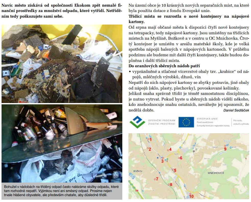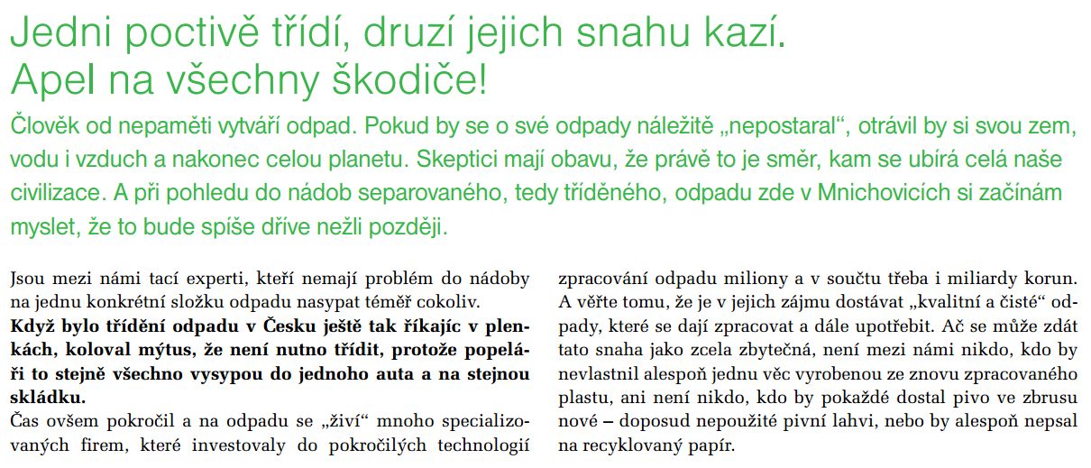 Jedni poctivě třídí ... str.1, str.2 (ŽIVOT MNICHOVIC, 2015-06)