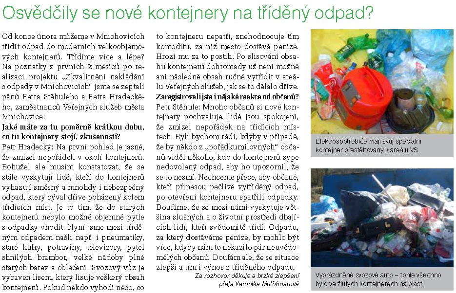 Osvědčily se nové kontejnery na tříděný odpad? (ŽIVOT MNICHOVIC, 2015-03)