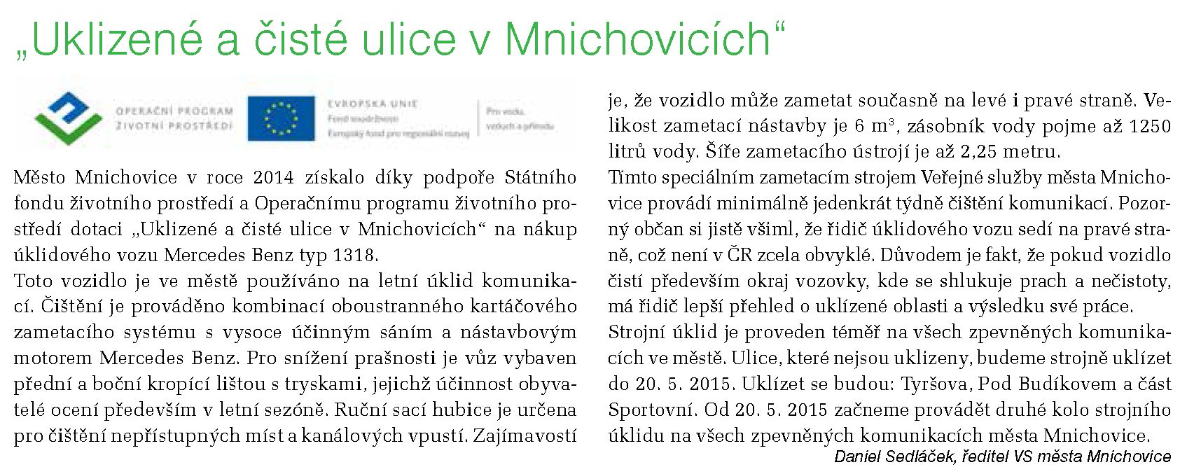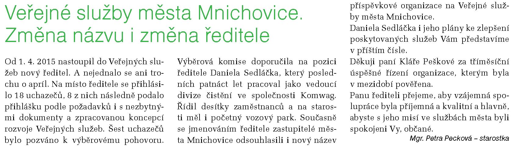 Veřejné služby města Mnichovice - Změna názvu i změna ředitele (ŽIVOT MNICHOVIC, 2015-03)