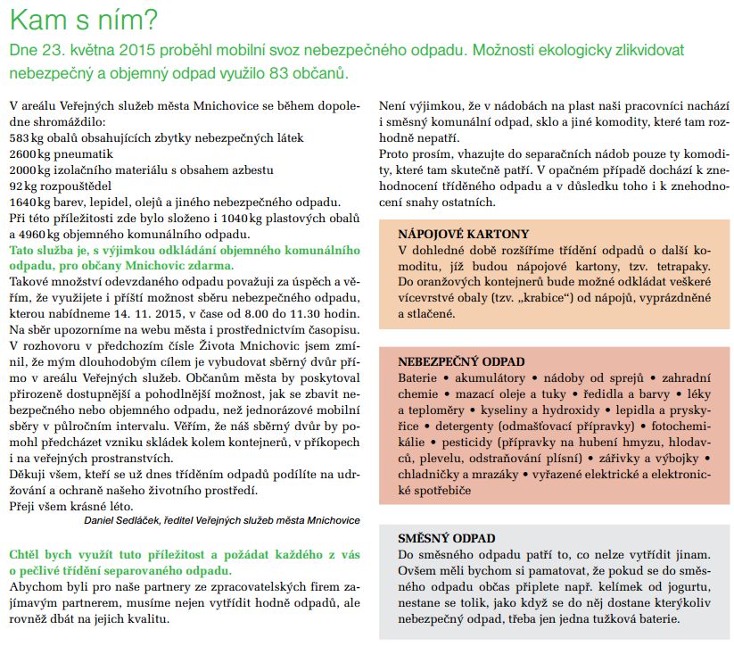 Jedni poctivě třídí ... str.1, str.2 (ŽIVOT MNICHOVIC, 2015-06)