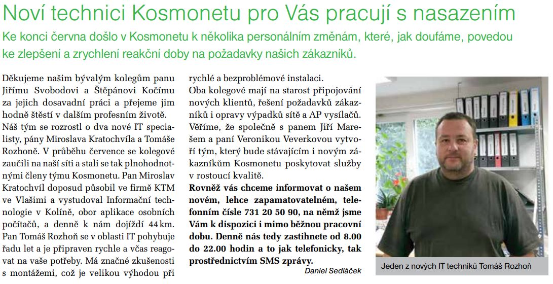 Nové posily Kosmonet (ŽIVOT MNICHOVIC, 2015-07)