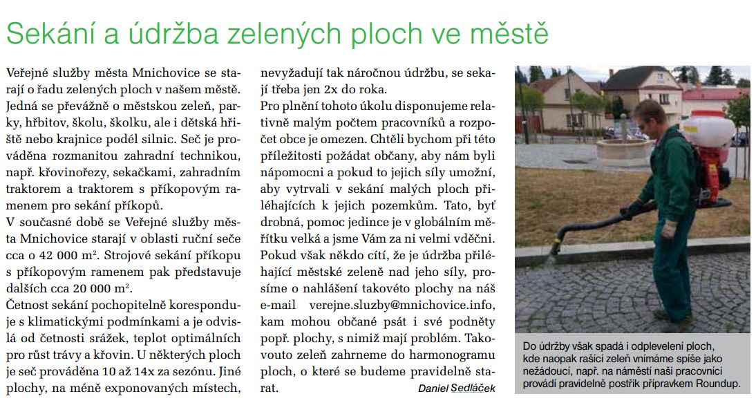 Sekání a údržba zelených ploch ve městě (ŽIVOT MNICHOVIC, 2015-06)