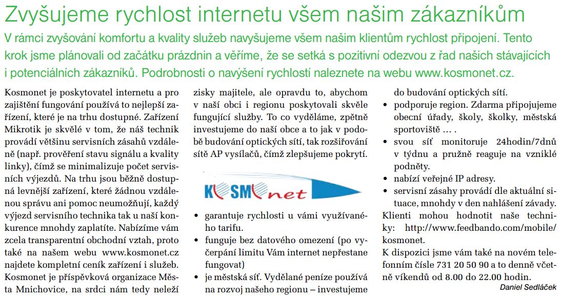 Zvyšujeme rychlost internetu všem našim zákazníkům (ŽIVOT MNICHOVIC, 2015-06)